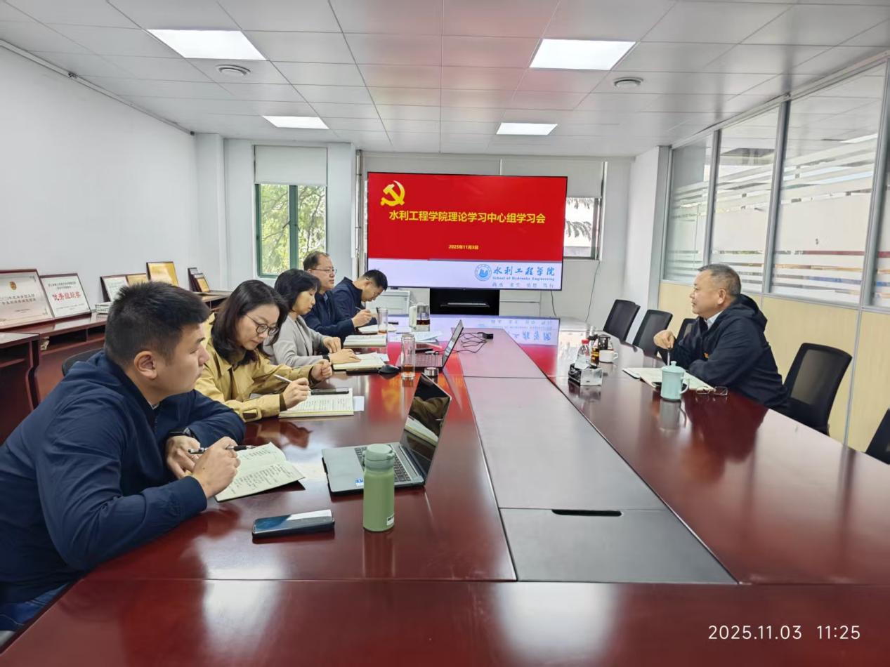 11月3日,水利工程学院在实南206会议室召开党委理论学习中心组学习会,专题学习党的二十届四中全会精神,副校长沈自力到会巡听,学院党委书记吴婉玲主持会议。